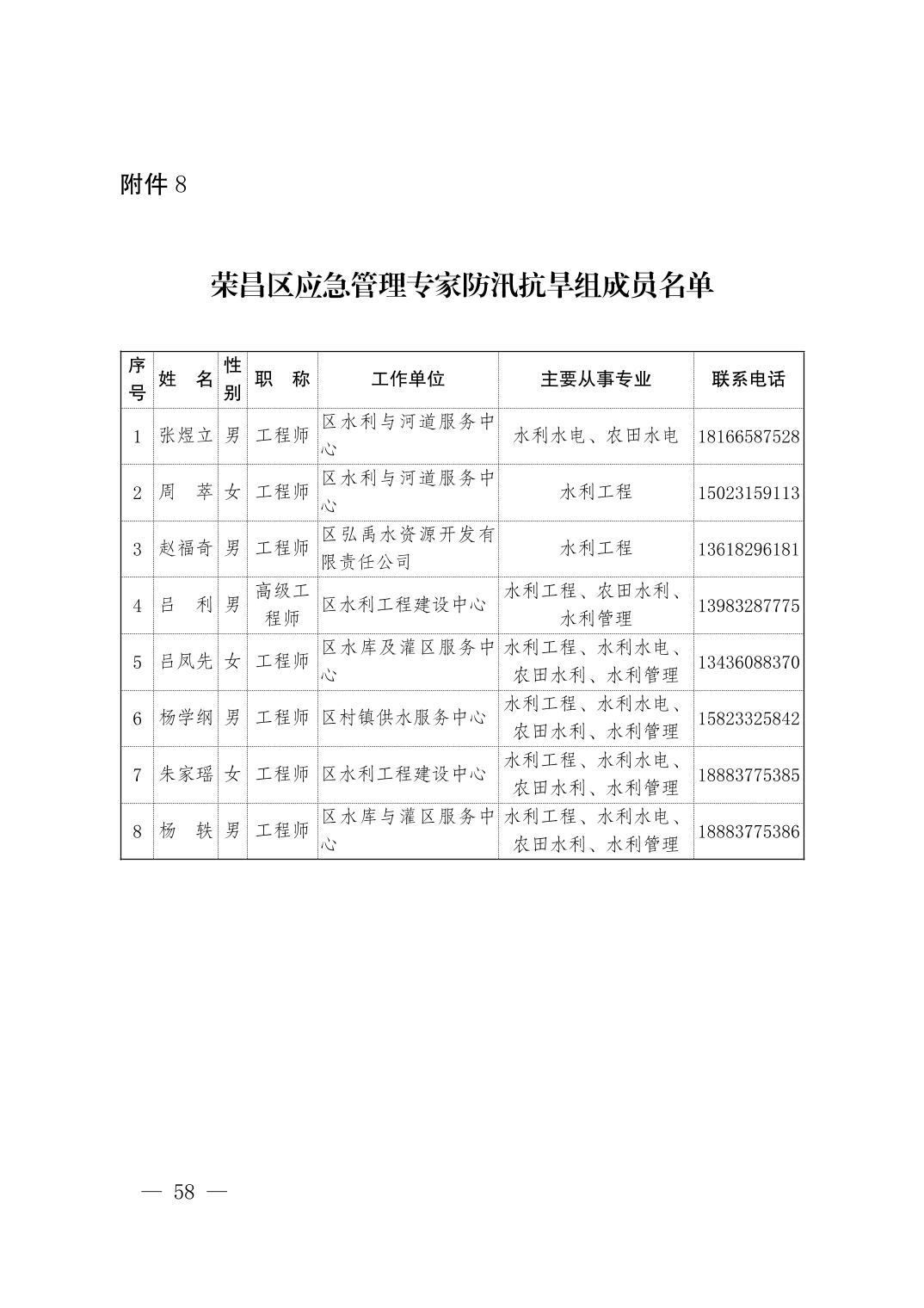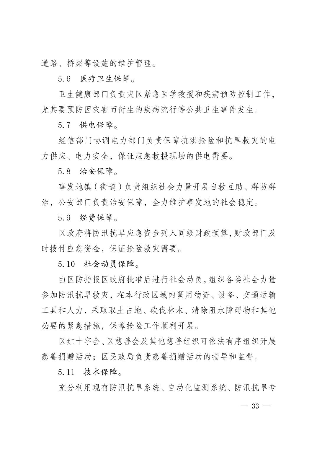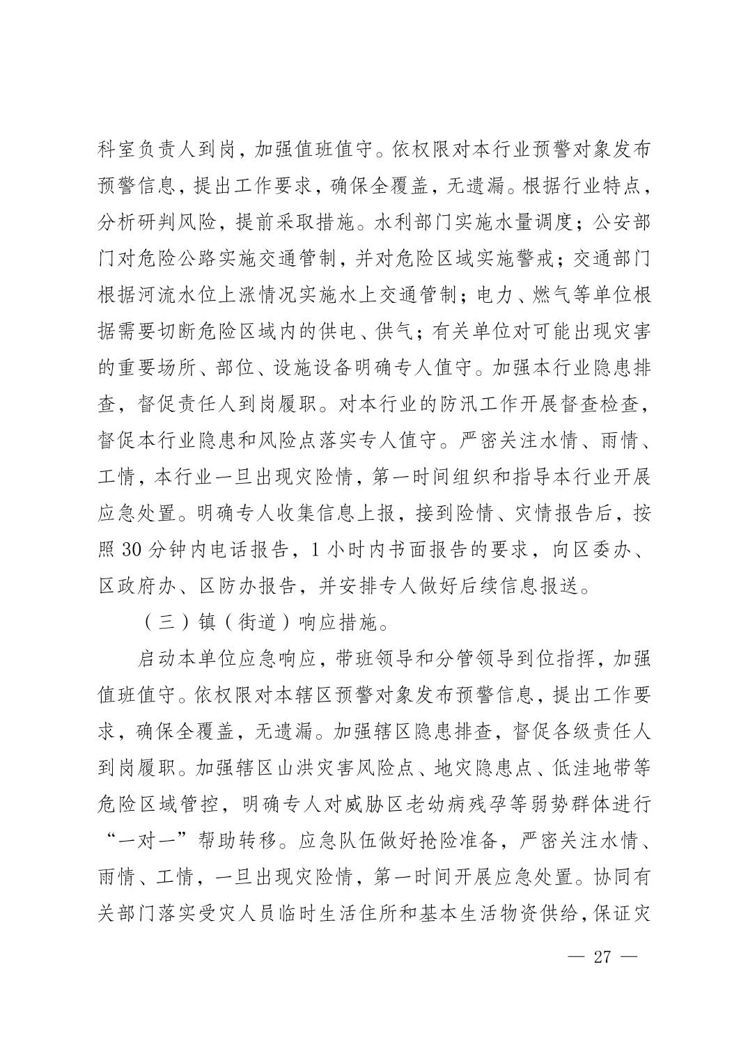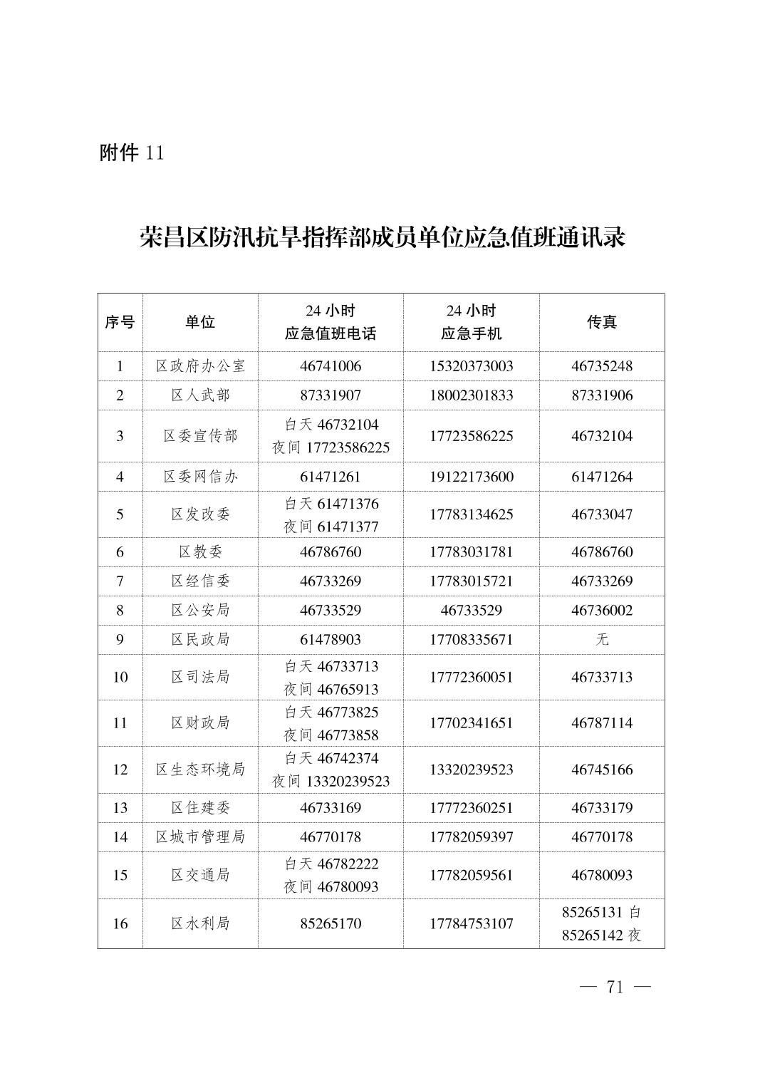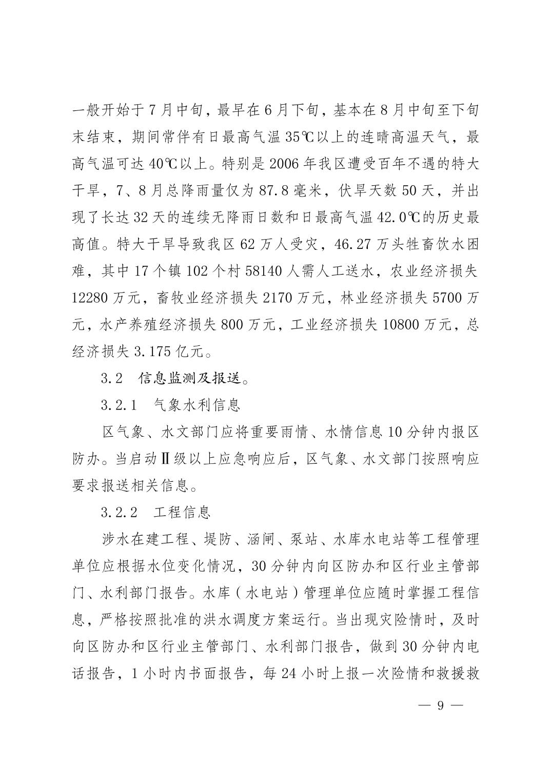 重庆市荣昌区人民政府办公室关于印发重庆市荣昌区防汛抗旱应急预案的通知