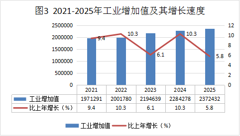 全年工业增加值2372432万元,比上年同比增长5.8%;规模以上工业增加值增长5.9%;规模以上工业企业总产值3947810万元,同比增长4.2%。