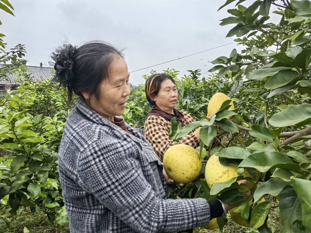 连日来,观胜镇柚子种植基地里,百余亩柚子迎来成熟季,游客们穿梭其间,尽享田园采摘乐趣。