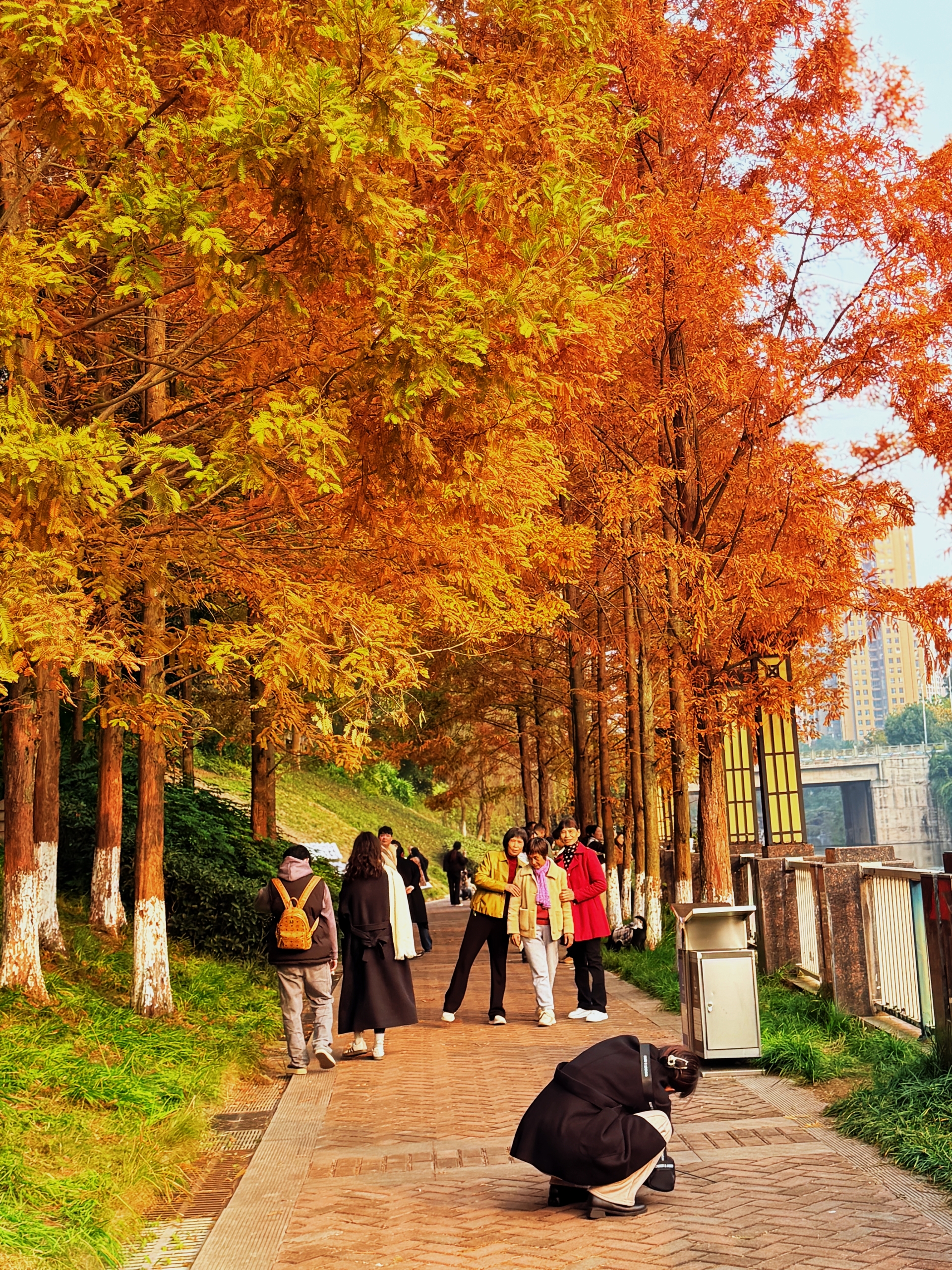 近年来,荣昌不断提升河岸绿化与景观品质,水杉已成为守护水岸的“生态名片”。目前荣峰河畔、迎宾健康主题公园、滨河东路、濑溪河体育文化公园等地的水杉已进入最佳观赏期。不少市民前来打卡,或驻足欣赏,或拍照留念,笑声与快门声此起彼伏。(谭兴旺 孙珍)