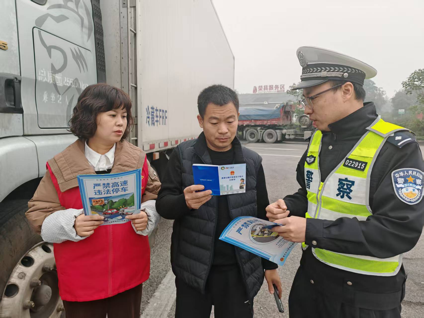 近日,市公安局交管总队高速五支队荣昌大队在荣昌服务区开展“文明交通 礼行天下 守法出行 渝路平安”主题宣传活动,向驾乘人员发放《高速公路行车安全小贴士口袋书》,内容涵盖路况预判、恶劣天气应对、事故处理等关键知识,同时寓教于“礼”,赠送印有安全提示语的钥匙扣,让安全提醒融入日常。