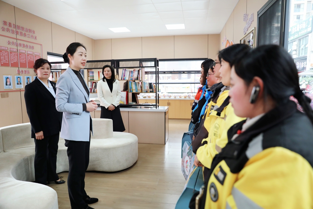 在东邦城市广场“荣新驿站”,万容与新就业群体女性工作者深入交流,细致询问工作生活、权益保障与实际需求,对大家坚守岗位、服务城市运行表示感谢。万容鼓励大家立足岗位、奋发有为,积极融入基层治理,以实干展现女性风采;同时,叮嘱相关单位要坚持党建引领,健全新兴领域妇联组织,引导新就业群体加强自我教育、自我服务、自我管理,把驿站建成暖心港湾。