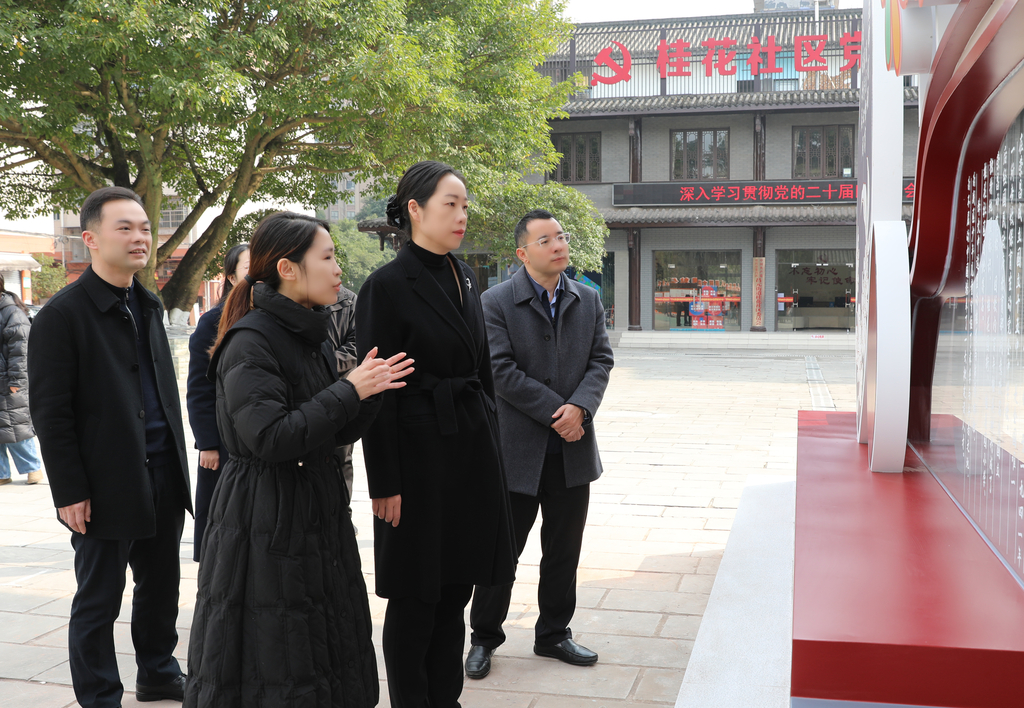 在昌元街道基层治理指挥中心、桂花社区党群服务中心,万容详细察看“141”基层智治体系、班子建设情况,深入了解党建引领基层治理的实践路径。随后前往广顺街道基层治理指挥中心及柳坝村,详细询问智治体系运行、杨家湾中水回收利用集体经济项目运营等情况。万容在调研中指出,要深挖党建与基层治理融合创新突破口,整合多方资源,做强“党建+治理”特色载体,提炼形成可复制、可推广的经验样板;要以党建引领产业发展、招商引资和企业服务,把党建优势转化为发展胜势。