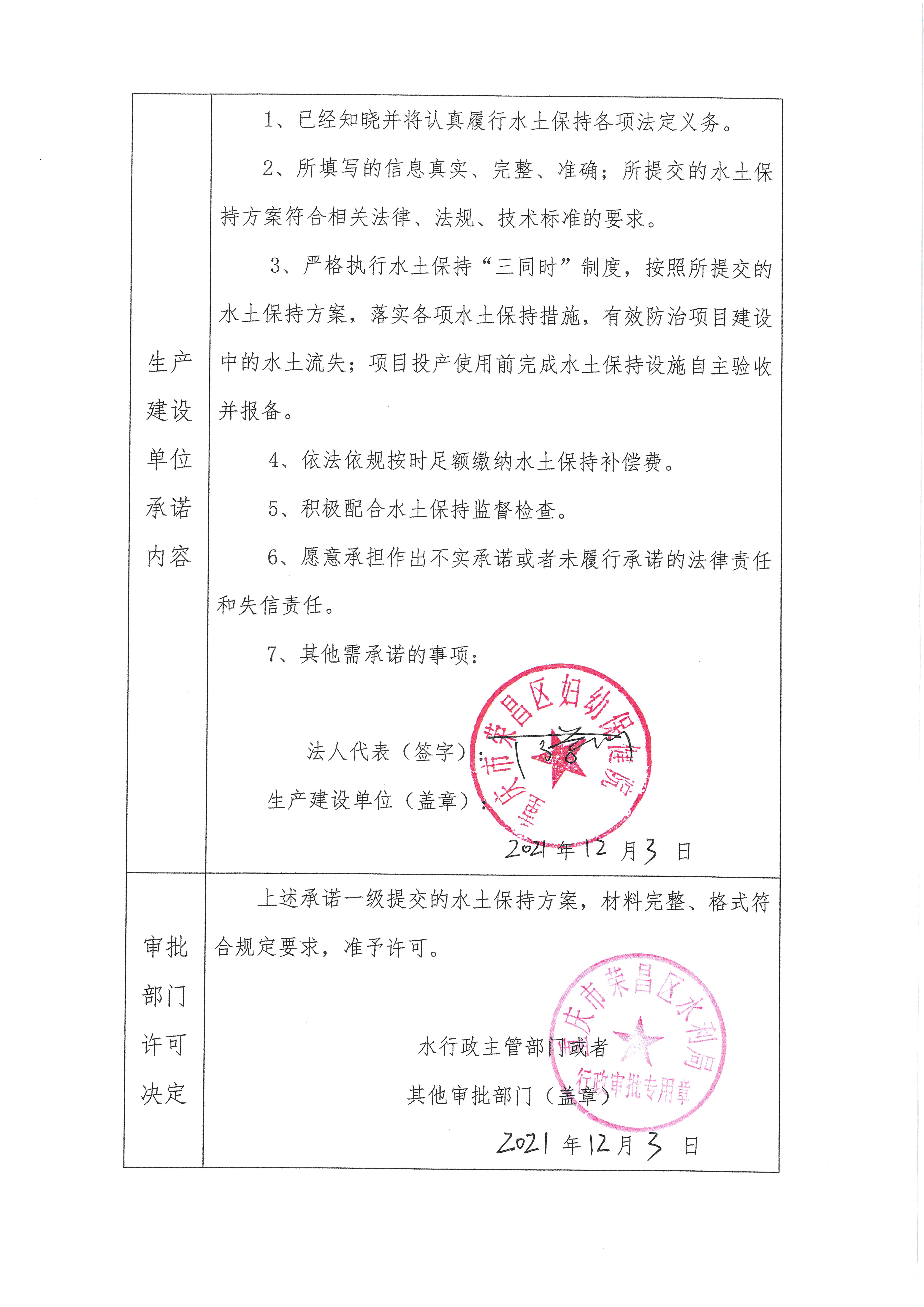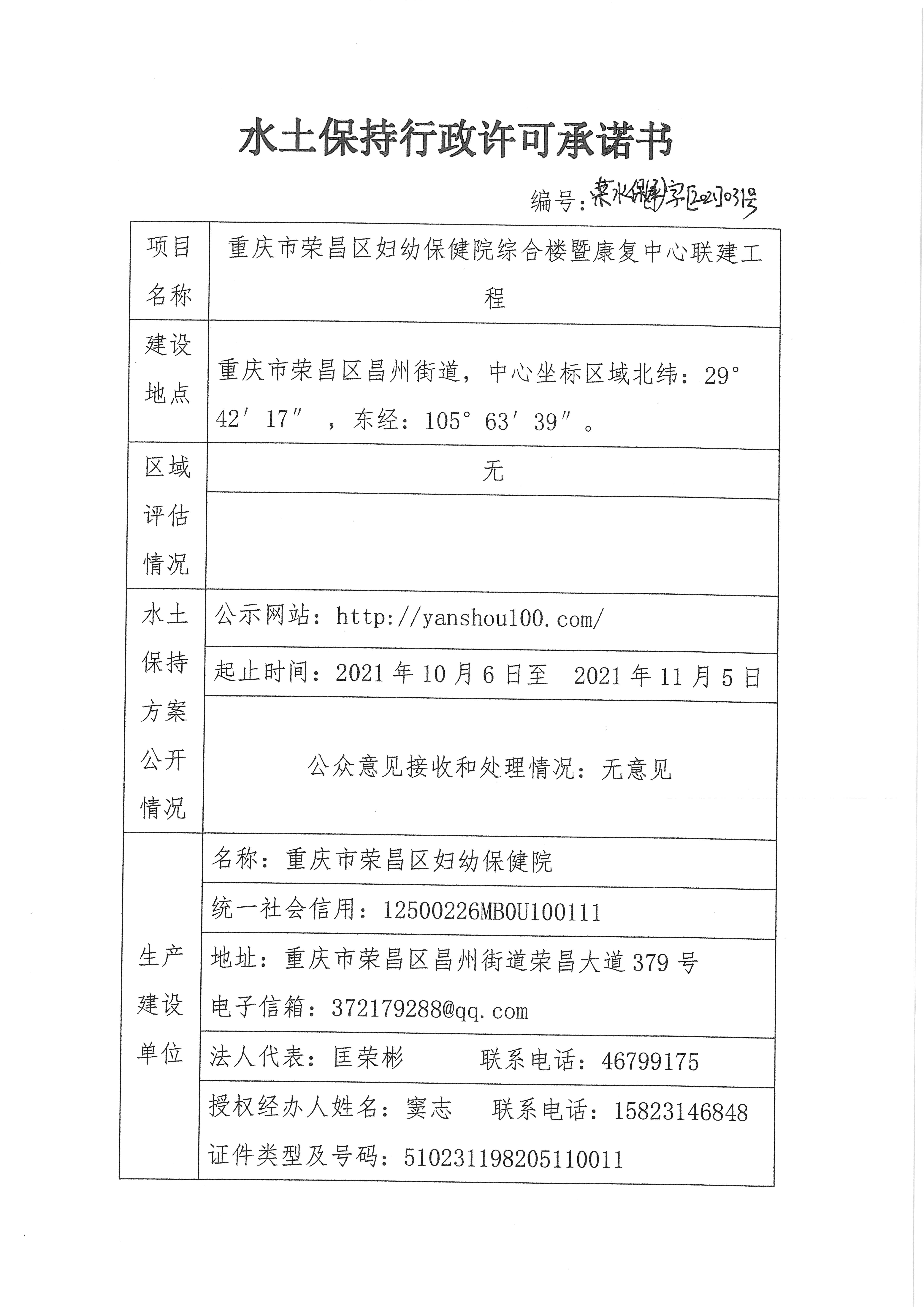 水土保持行政许可承诺书(荣水保(承)字〔2021〕031号)