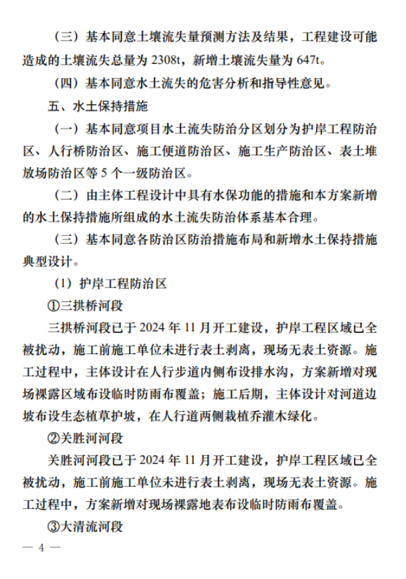 (四)基本同意水土流失防治分区和分区防治措施安排。