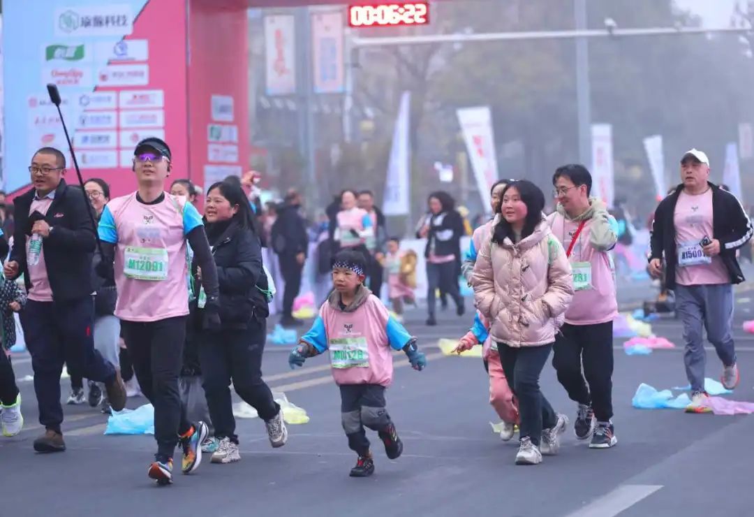 上午8点30分,伴随着发令枪响,比赛正式开始。参赛选手们陆续越过起跑线,沿着赛道进发。比赛设全程马拉松、半程马拉松和迷你跑三个项目,吸引了国内外12000余人参赛,其中外籍选手13名。参赛选手中,年龄最大的73岁,年龄最小的4岁。